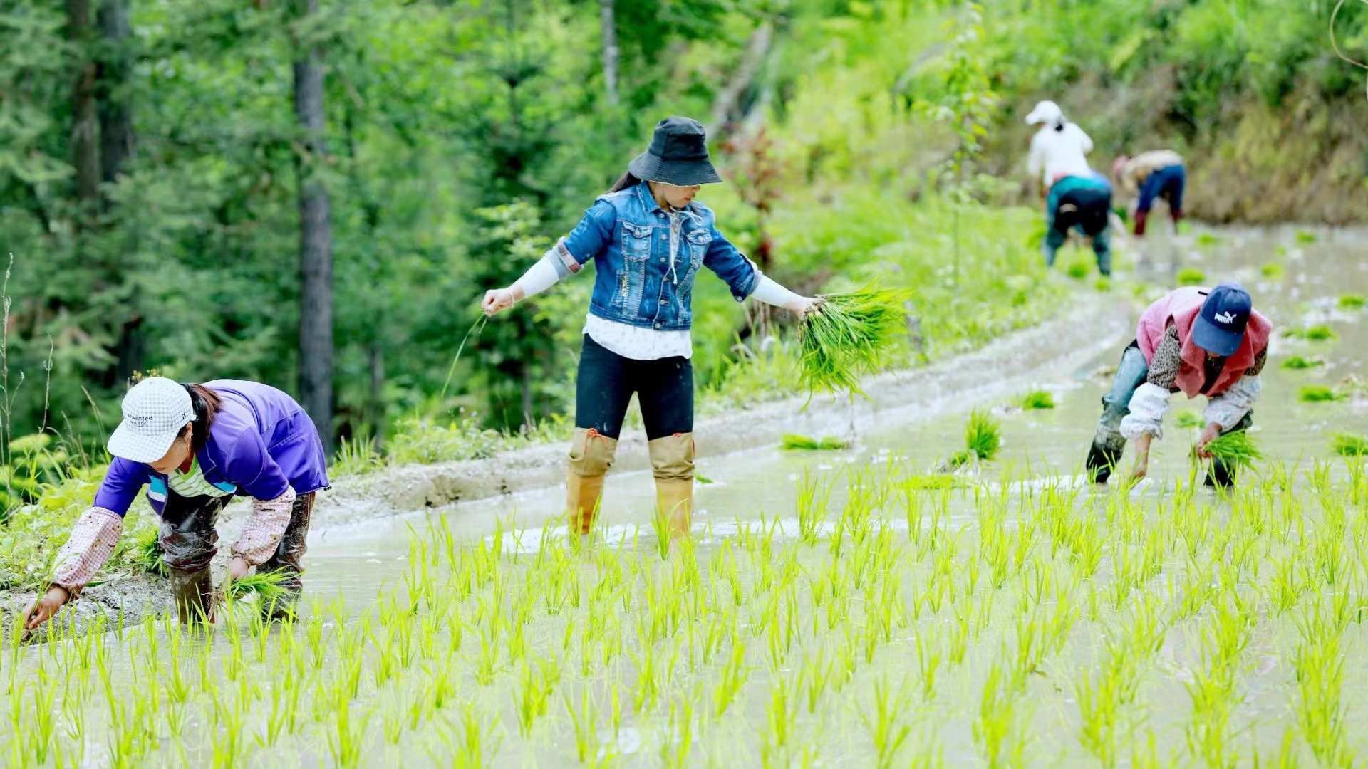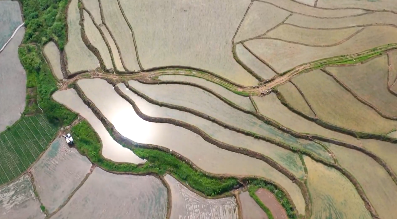 初夏,万州区甘宁镇仙云村的水稻已完成插秧,田畴如同画布一般铺展开,田坎线条弯曲优美,水田里秧苗翠绿,在阳光照耀下茁壮成长,一片生机勃勃的景象。