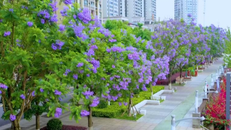 近期,位于万州区音乐广场一带的蓝花楹盛开,淡紫色的花束一串串、一簇簇,压弯了枝头,随风摇曳、风情万种,洋溢着浓浓的浪漫气息。