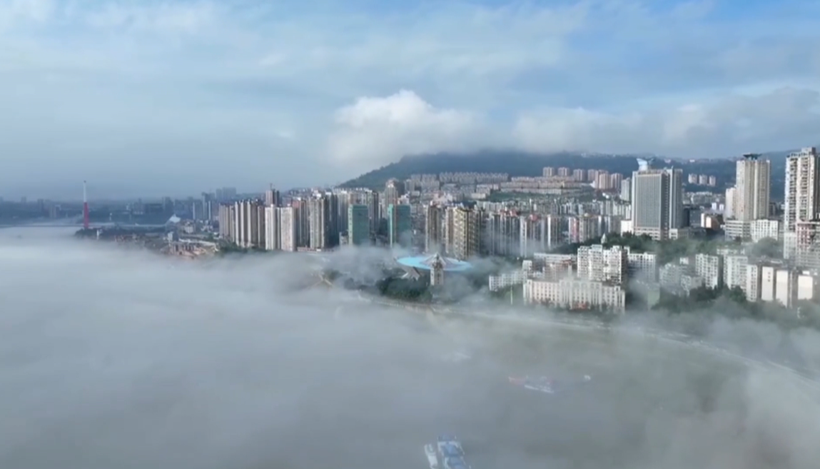 一场大雨过后,万州城区出现平流雾奇观。雾在城中飘,城在雾中立,犹如人间仙境。