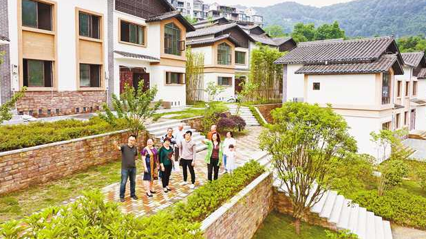 6月2日,在北碚区澄江镇北泉村新建成的缙云山居生态迁建房小区,分到新房的村民们在小区内参观。目前,45户生态搬迁户陆续拿到了新房钥匙开始装修。