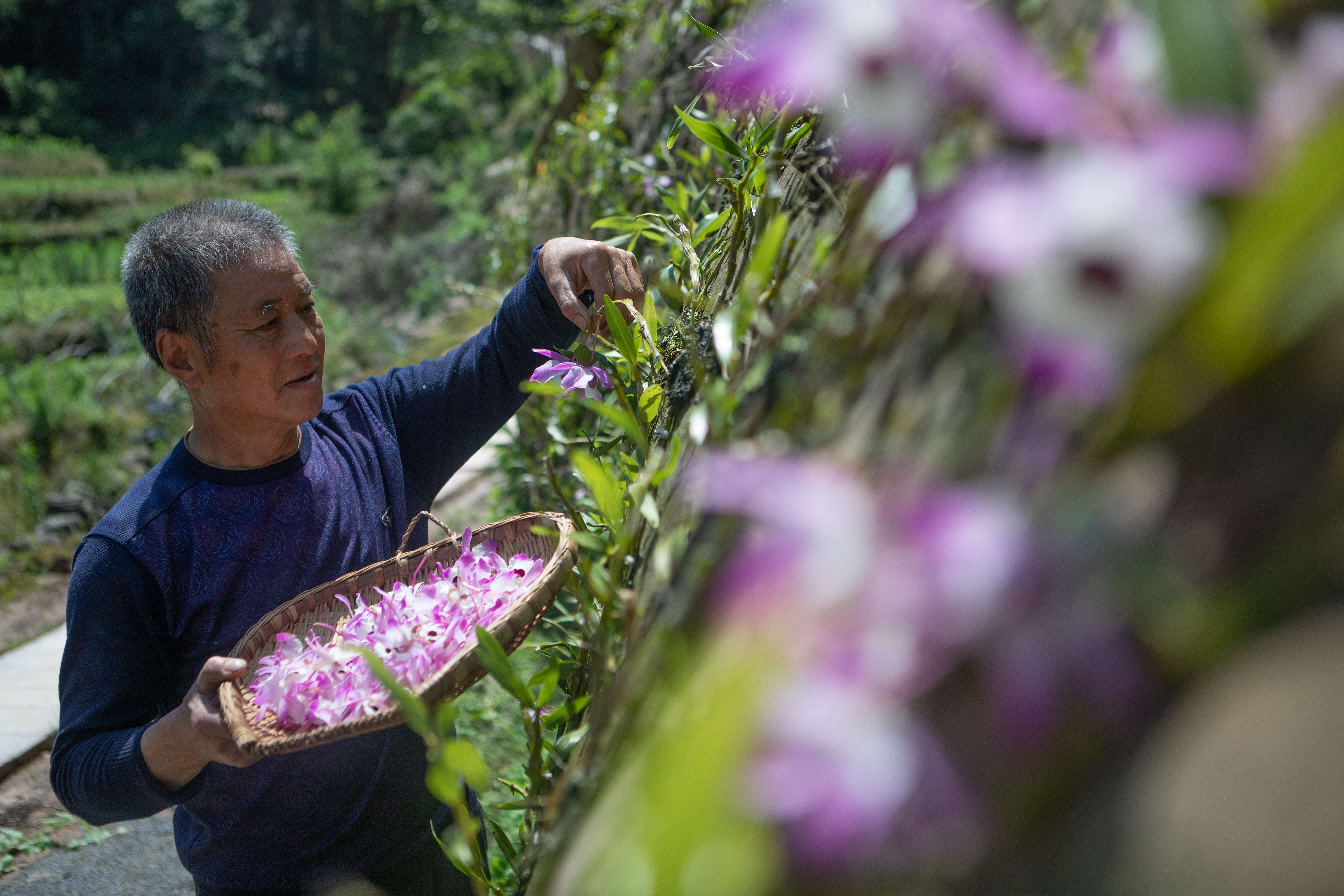 2020年,滩子口村在村里的峭壁开荒,播种下10万株石斛。经过两年的精心管护,如今,这片悬崖荒石上已开出“致富花”,迎来第一个丰收年。