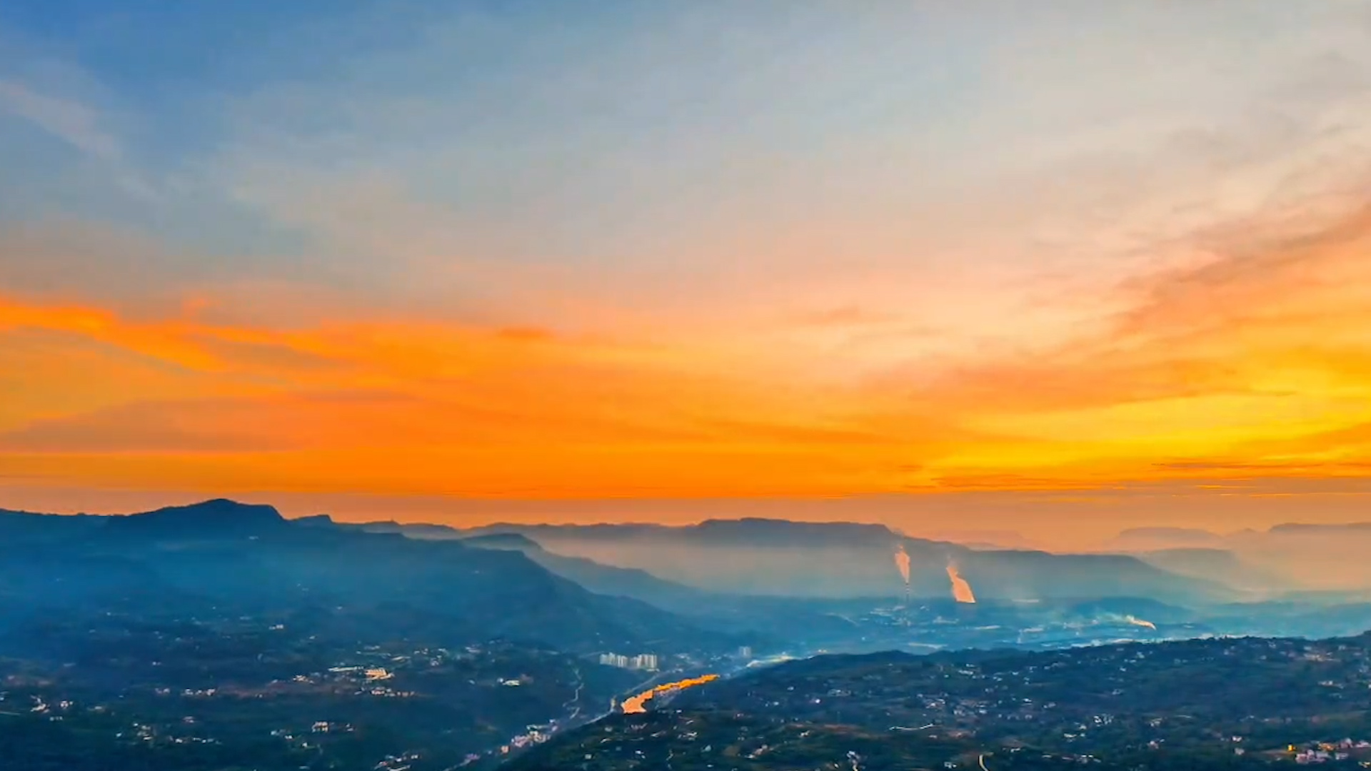 5月12日,黄昏时分的綦江,夕阳衔山,霞光漫天,金色的余晖洒满大地,远处的山与城市高楼交相辉映,勾勒出一幅迷人的画卷。