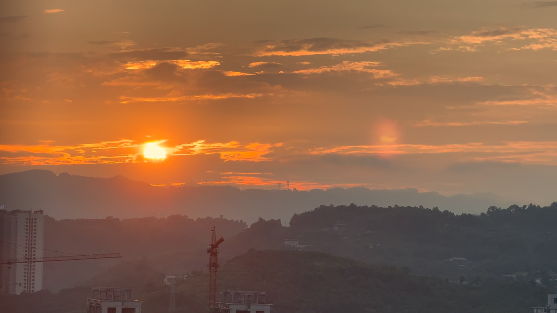 昨天,记者在綦江城区记录到夕阳西下的延时画面,傍晚时分的夕阳映射出金色的余晖洒满大地,十分壮美。