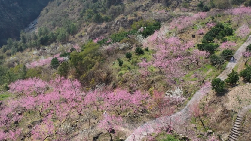 重庆市巴南区丰盛镇油房村200余亩桃花竞相开放,花期可持续到3月20日。