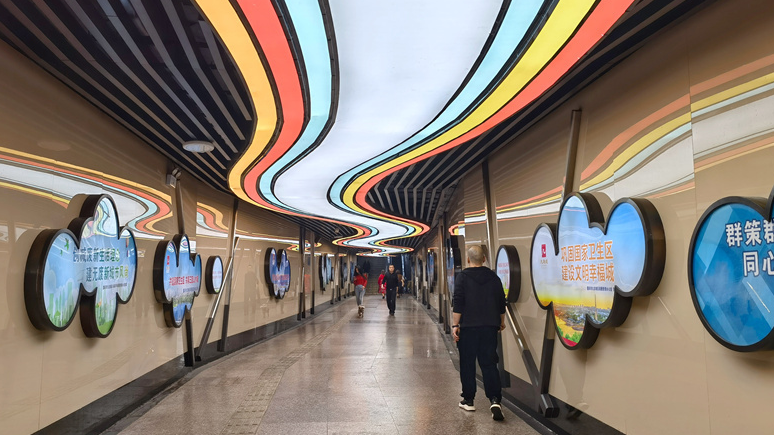 九龙坡:团结路地下通道的彩虹灯亮了