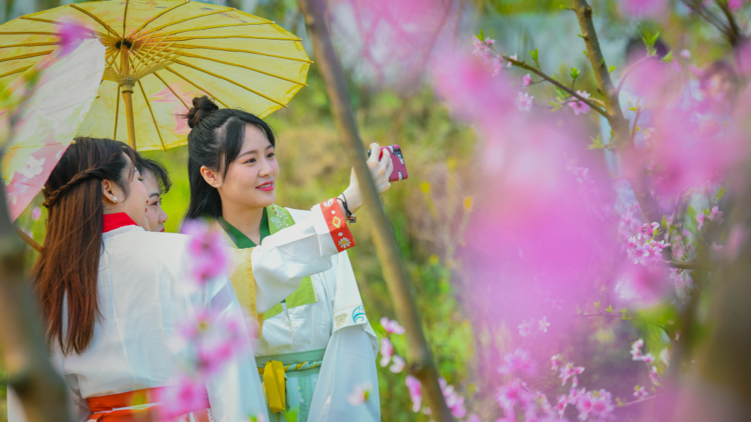 阳春三月,桃花争艳。在重庆市奉节县的汾河、鹤峰等桃花盛开的地方,粉嫩的桃花傲立枝头、迎风起舞,慕名踏青赏花的人们尽情感受着春天里如痴如醉的气息