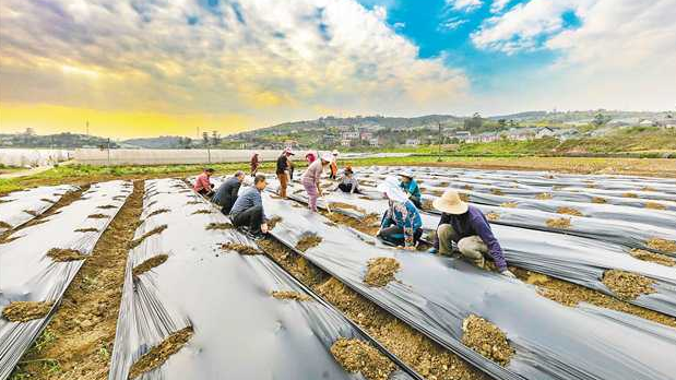 3月14日,南川区南平镇石庆村8组,皮凤蔬菜种植场正在铺设全生物降解膜。