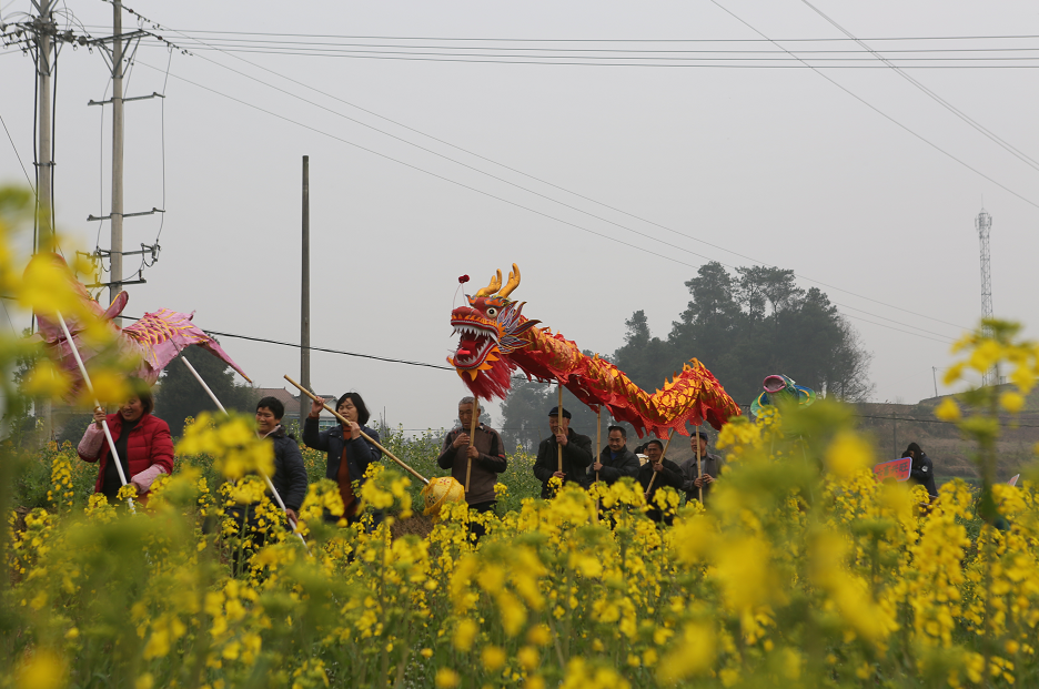 涪陵:菜花田间“游龙祈福”喜迎春归