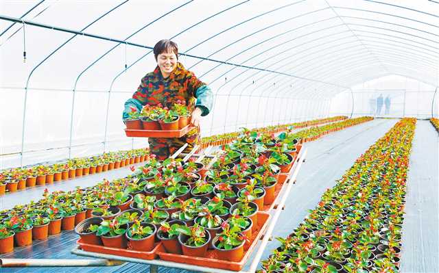 12月20日,大足区雍溪镇慈云村,村民李良超正在花卉基地搬运鲜花。据了解,该镇的花卉园艺产业基地位于石堡、慈云、团结、泡马、玉峡等村,现已建成面积8000亩,转移农村剩余劳动力2000余人,当地农民就近就业,增收顾家,进一步提升了获得感、幸福感。