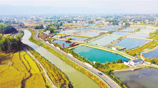 12月21日,梁平区礼让镇川西村,2020年度全国“十大最美农村路”——梁平渔米路与鱼塘、稻田、河流、农房等构成美丽的田园画。