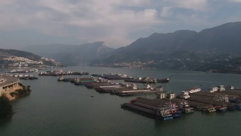 在重庆市奉节县梅溪河与长江的交汇口,有一片宽阔的水域,因三峡水库船闸流量控制,下行船舶便选择在此停泊,等待通行。时间久了就逐步形成船舶停靠的天然港湾,几十到几百艘船只聚集在一起,显得蔚为壮观。