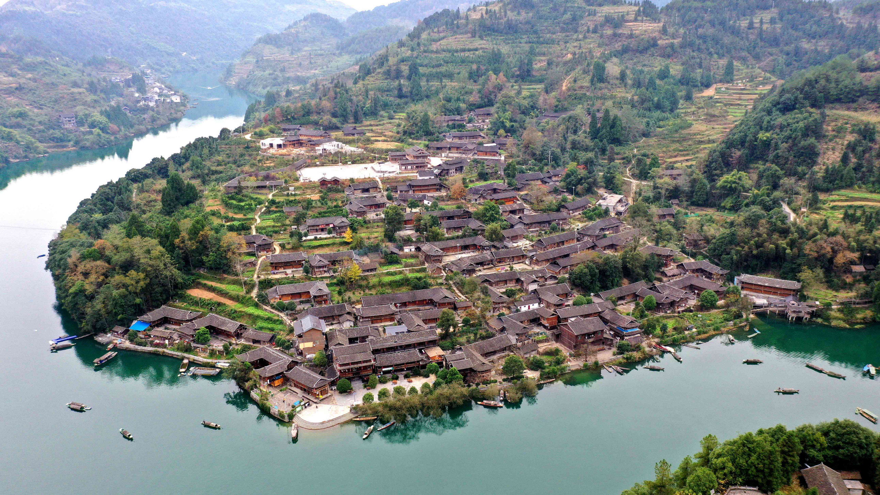 这段时间,阿蓬江流经的酉阳县境内,一江碧水,两岸层林尽染,景美如画。