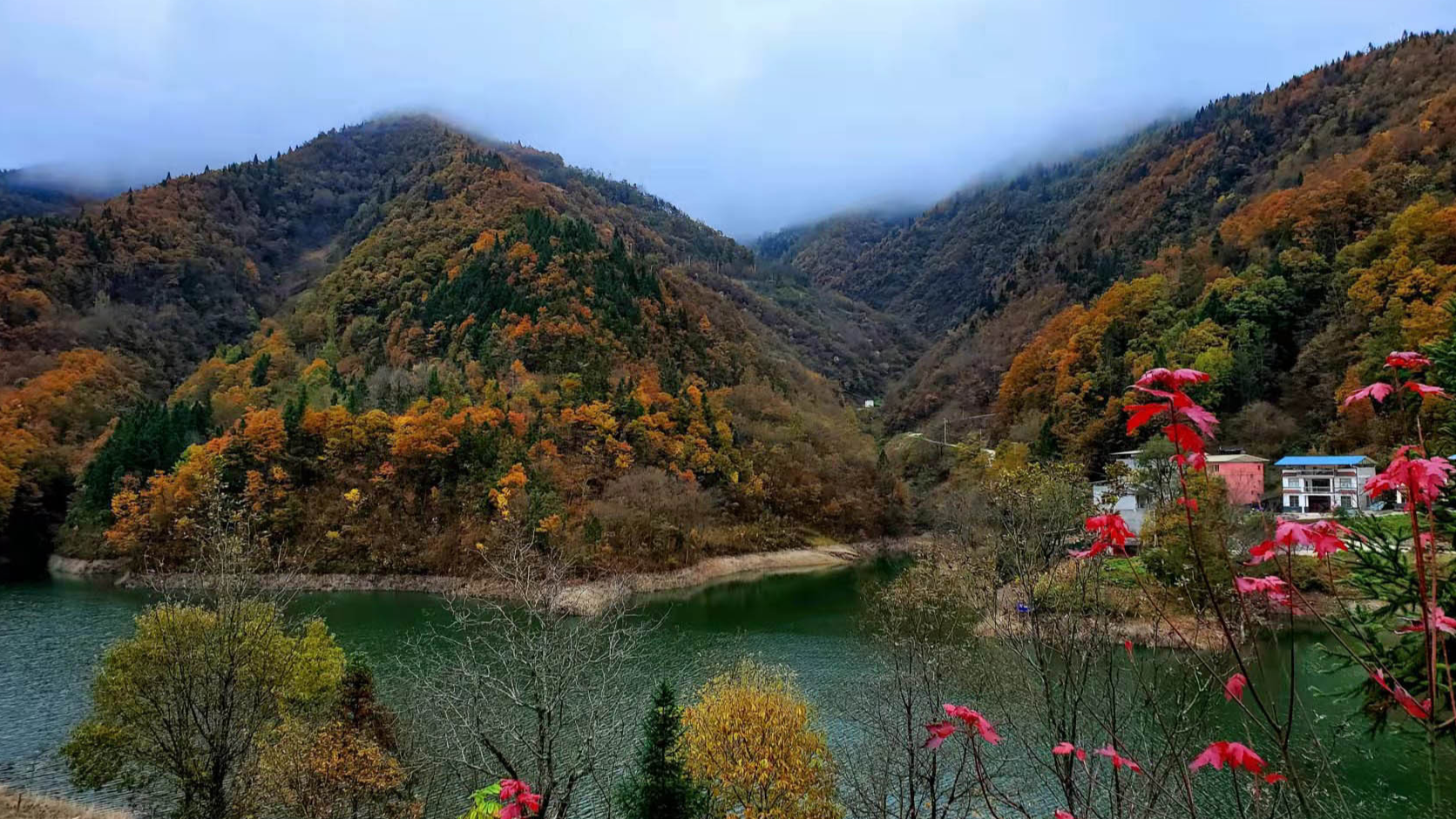 巴山尽染,秋水含情,山水相依的巴山深处,溪流潺潺,彩叶林在湖面映衬出一幅幅美丽画卷,落叶在溪流中缓缓流走。