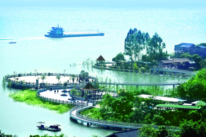 初冬时节,在重庆市巫山县滨江路,金黄的银杏叶与碧绿的长江水交相辉映。船行其间,犹如画中,令人目不暇接。