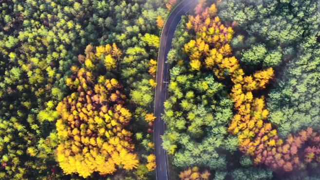 人头寨景区:金黄落叶松 蔓延在初冬的童话