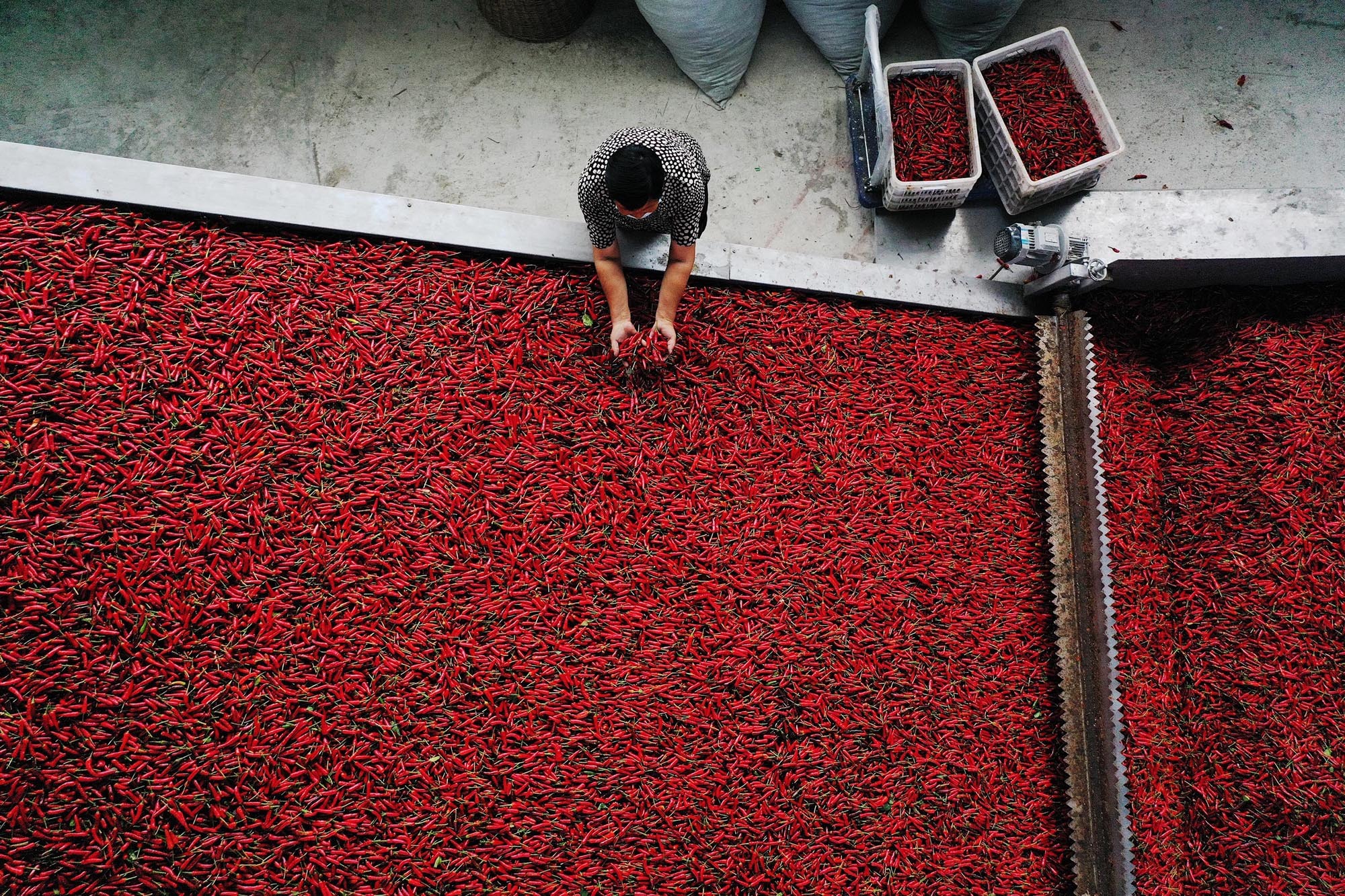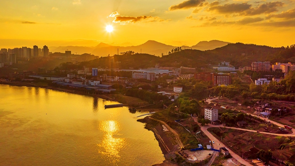 10月8日,重庆忠县大地雨后天晴。傍晚时分,落日晚霞将天空染成一片绯红,呈现出“落霞与孤鹜齐飞,秋水共长天一色”的意境。
