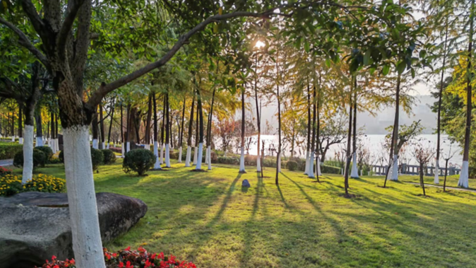 小雪节气已过,本应是寒气逼人、树叶凋零的冬日景象,但在夕阳的照耀下,万州渝东新区南滨公园却是一番温暖而多彩的世界。