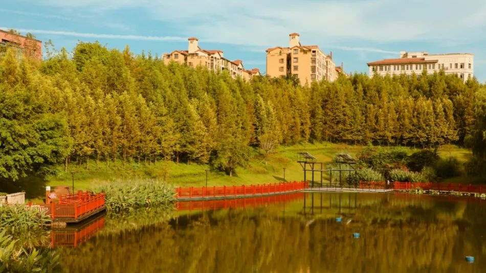天朗气清、江水盈盈,枯荷蒲苇、梧桐飒飒,枫叶赤红、山塘清冽……在两江新区悦来国际会展城,一幅幅秋日画卷铺展开来,秋日之美随处可见。