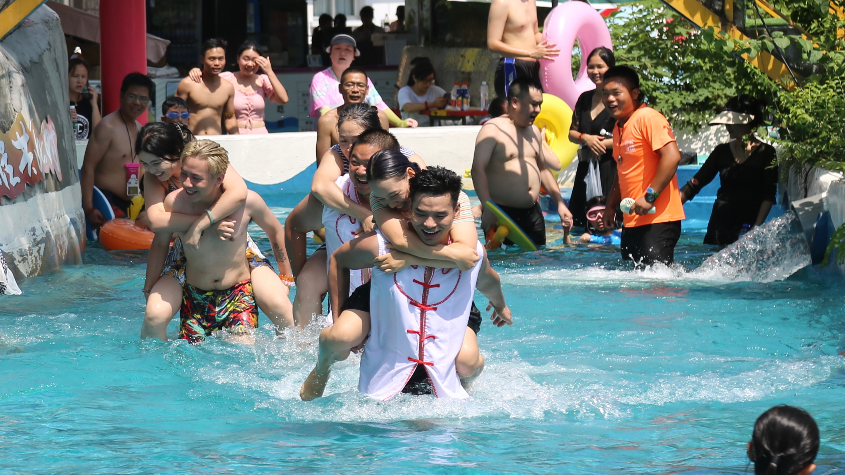 8月22日是传统七夕佳节,重庆涪陵美心红酒小镇水上乐园洋溢着欢乐与甜蜜,一对对夫妻和情侣在这里玩水消夏,携手参与水上趣味活动,在“鹊桥”下的“天河”里来了一场“踏浪逐爱”之旅。