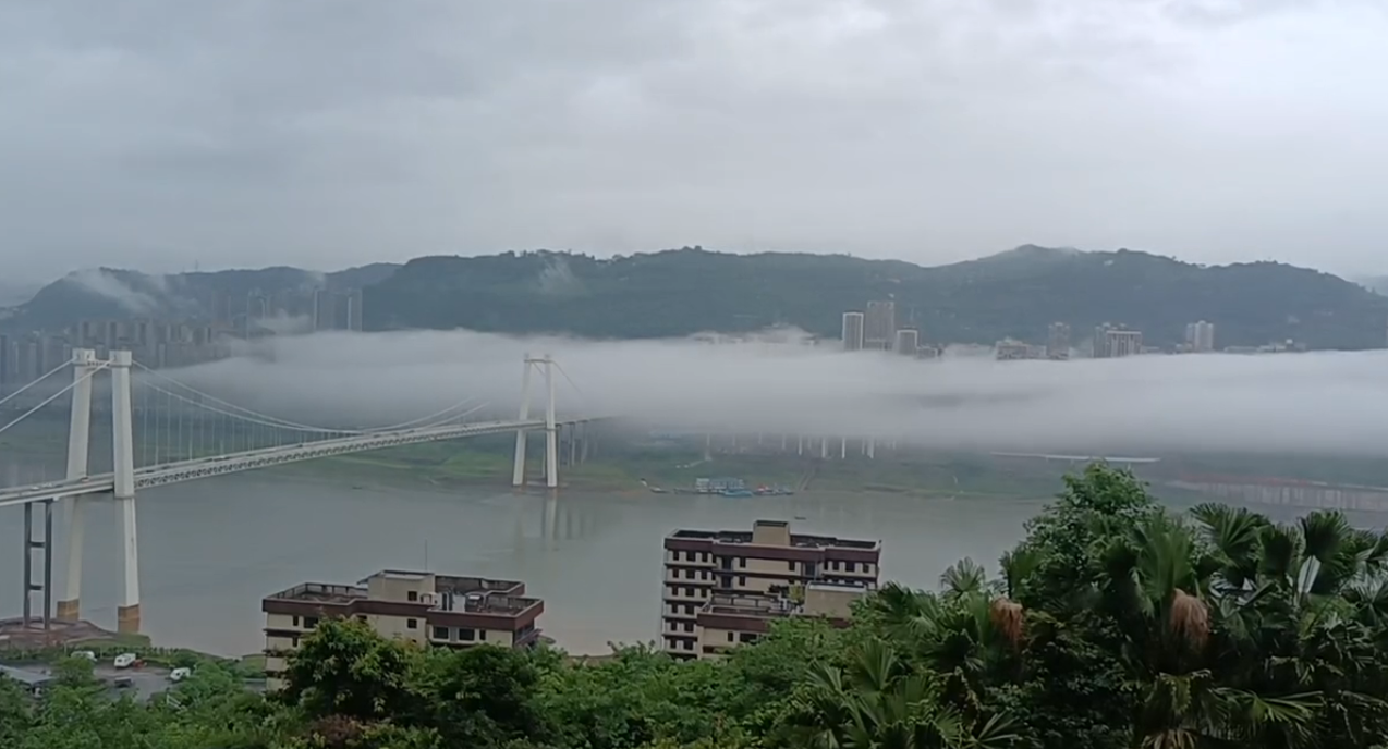 6月29日中午,暴雨逐步停歇,雨过天晴,万州江面云雾缭绕,城区出现平流雾奇观。雾在城中飘,城在雾中立,整座城市好似穿上了美丽的“婚纱”,如梦如幻,犹如人间仙境。