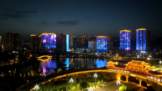 当夜幕降临,大足街头灯光闪烁。造型各异的街灯,扮靓城市夜色,流光溢彩衬托出人间烟火气。