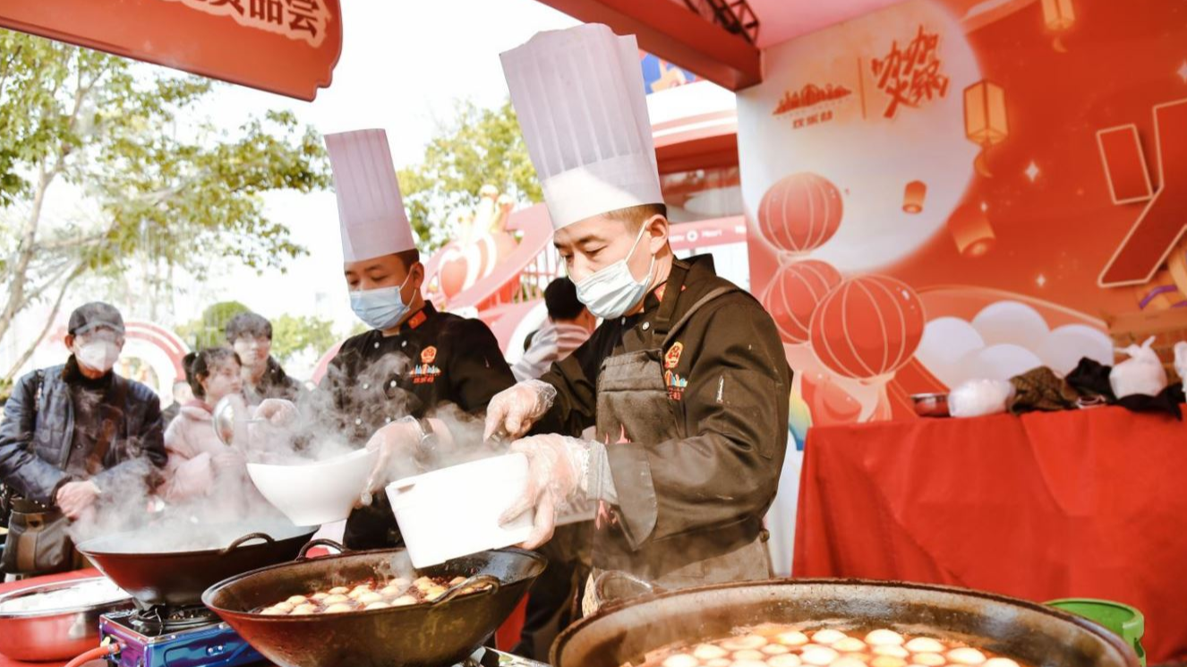 看非遗表演 吃麻辣汤圆 游客在景区闹元宵