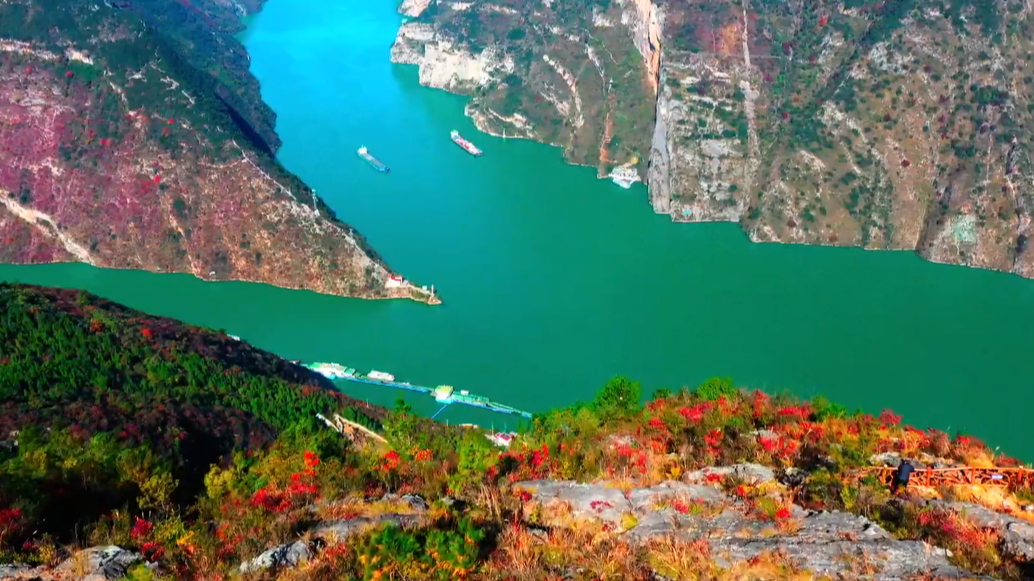 重庆巫山:舟行三峡里 红叶映峡江