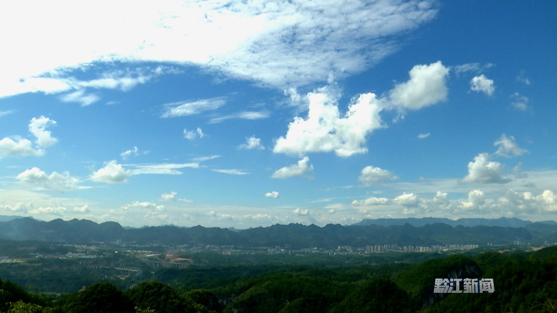 经过一场秋雨洗礼,黔江迎来了湛蓝的天空和洁白如絮的云朵,天空犹如被水洗过一般清透。蓝天、白云与群山、城市相融,如同一幅巨大的秋景图悬挂于天际间。