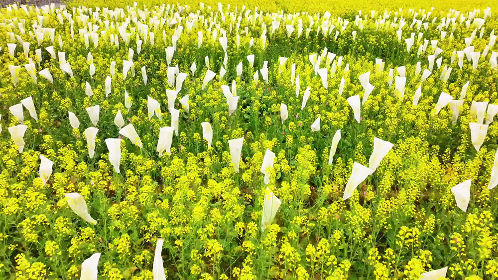 在万州区甘宁镇,重庆三峡农科院的试验田里,大片油菜花盛开,这些戴着“头套”的油菜花不仅给人以视觉盛宴,同时也让人感受到科技的魅力。