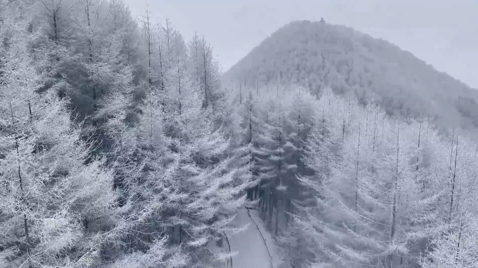 受冷空气影响,巫山县梨子坪森林公园被白雪覆盖,两万多亩落叶松银装素裹、群山绵延,构成了一幅美丽的自然画卷。