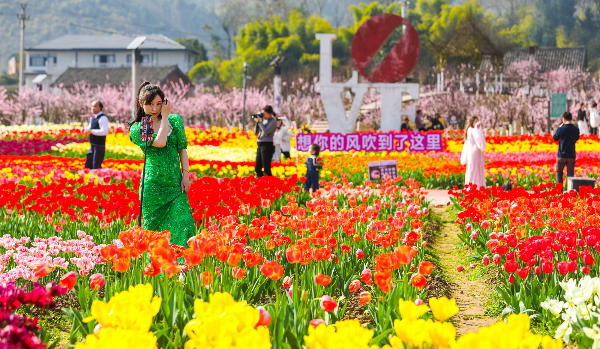 阳春三月,重庆市垫江县牡丹樱花世界景区,60万株郁金香竞相绽放,美不胜收。