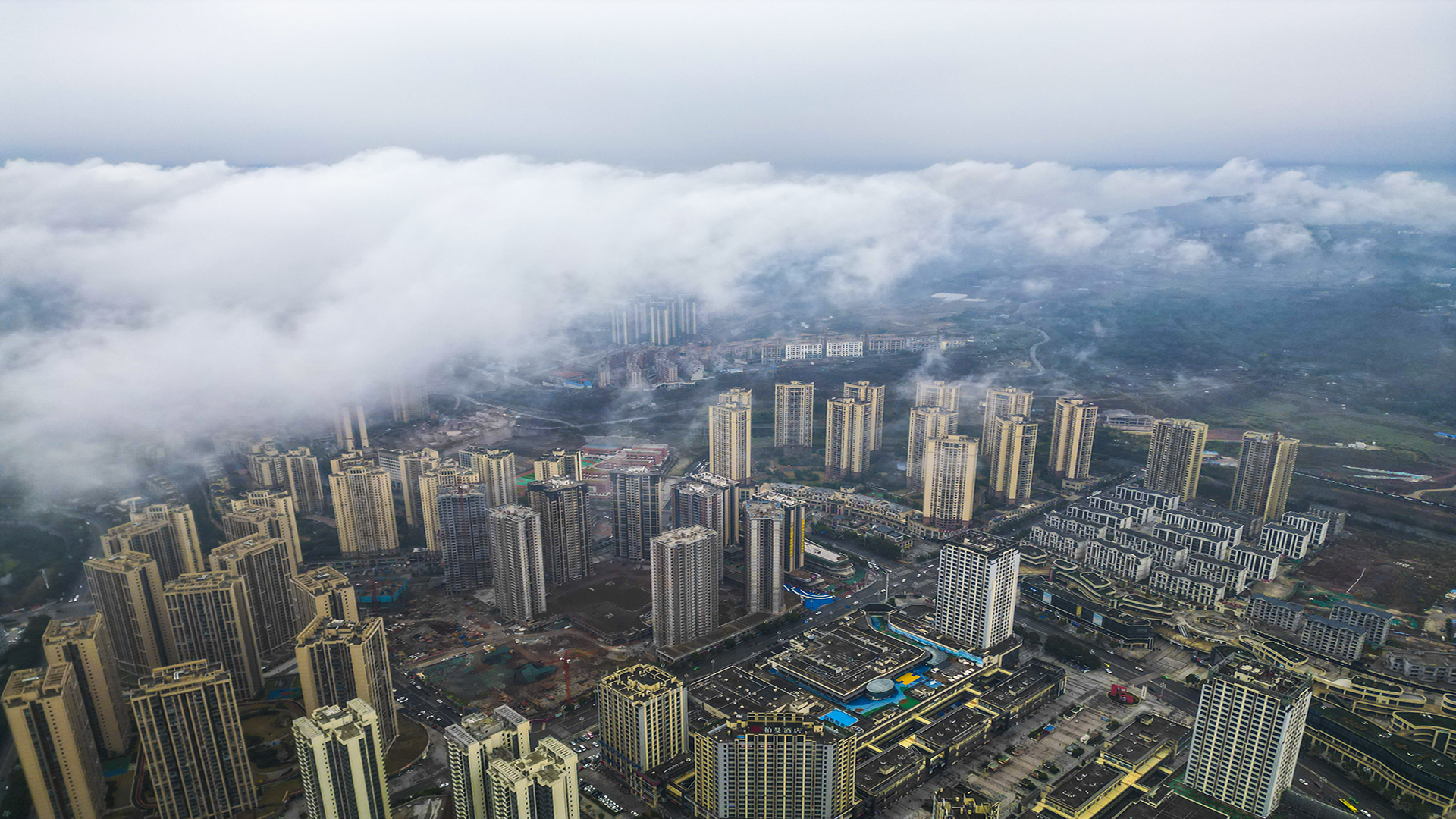 一场春雨之后,綦江城区出现平流雾,一时间城区高楼、山野沟壑,被平流雾所包围,放眼望去,洁白的云雾如同飘逸曼妙的袅袅轻纱萦绕在城市周边,如梦似幻,宛若仙境。