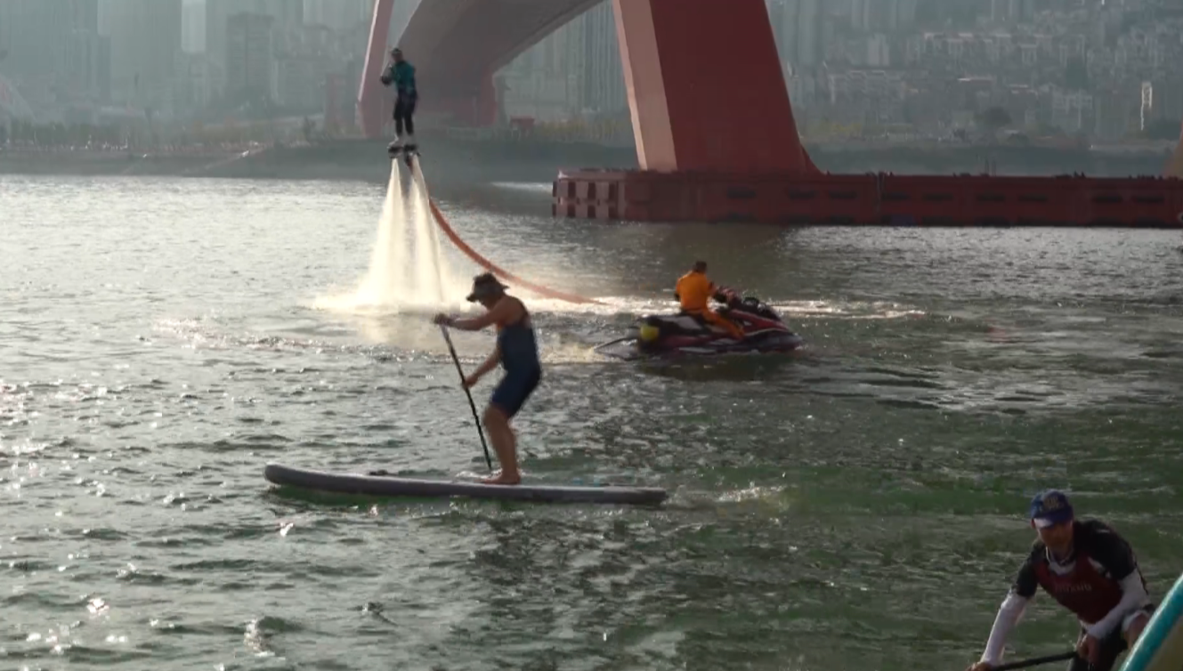 春节里,部分万州市民扎进长江,与碧水蓝天亲密接触,在运动中欢度春节。