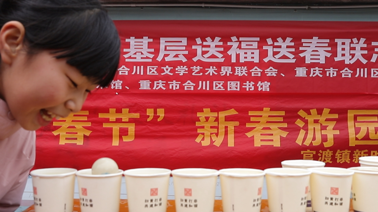 1月29日,在合川区官渡镇健身广场,人声鼎沸,“我们的节日——春节”新春游园活动正如期举行。游园活动设有摸福字、套圈、猜灯谜、吹乒乓球、送春联等项目,丰富多彩的内容吸引了群众广泛参与,大家热情高涨,玩得不亦乐乎,现场气氛热烈,欢声笑语充满了整个广场。