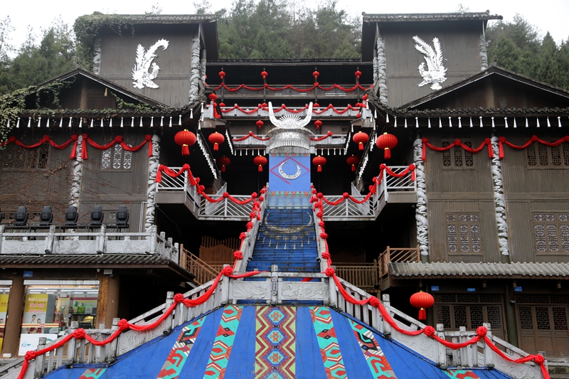 位于酉阳自治县桃花源街道的酉州古城,自1月15日开始,有关部门开始对酉州古城沿街两旁古楼进行装饰,数百盏大红灯笼鲜艳夺目,浓浓的年味扑面而来,处处洋溢着春节氛围。
