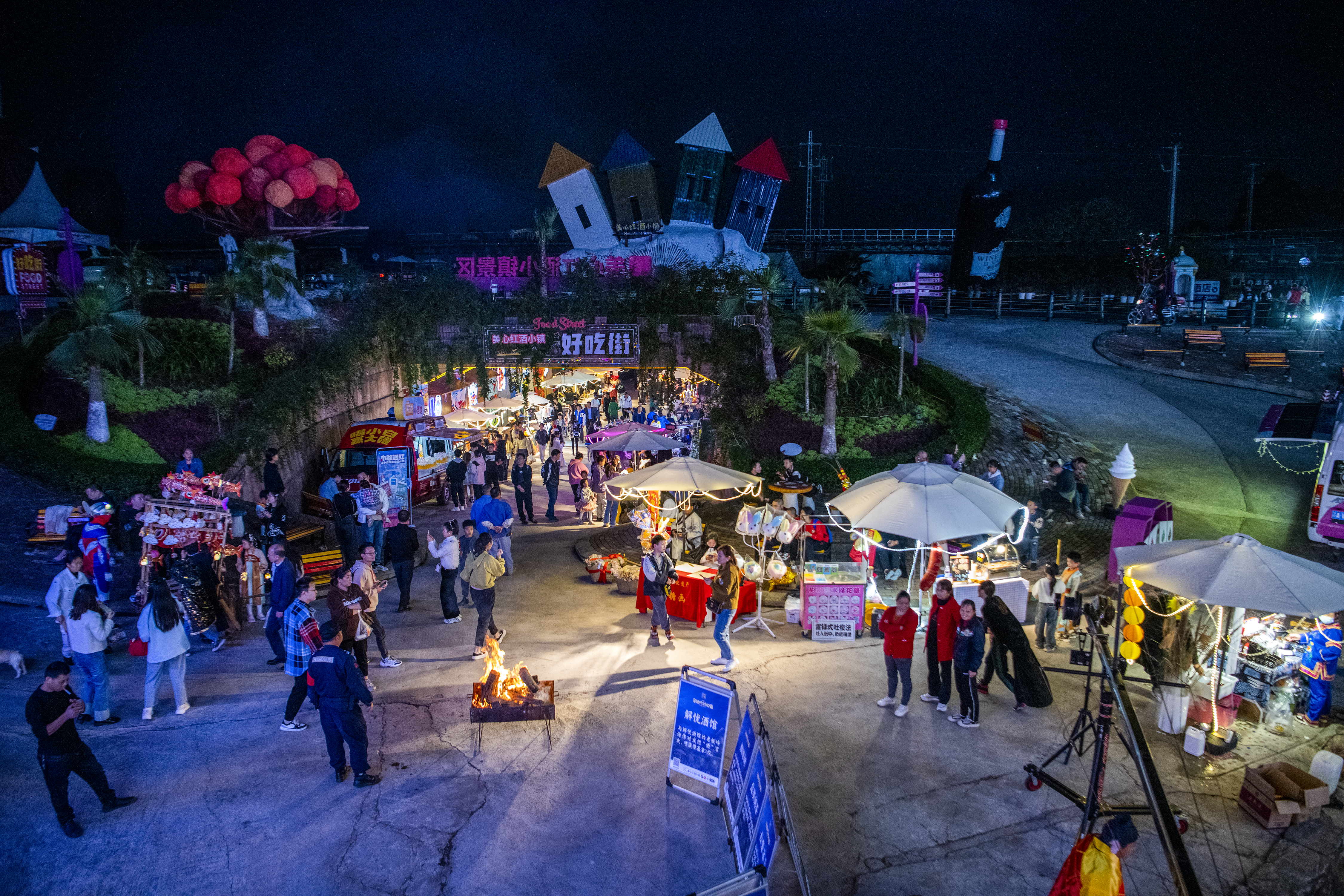 11月11日晚,2023穿越时空奇幻夜活动在重庆涪陵美心红酒小镇拉开帷幕。灯火璀璨的景区中设置了多元素的中西特色文化互动场景,三大主题集市、网红美食、潮流音乐、手工文创、国风国潮、情境互动让游客沉浸式“穿越”线下“双十一”,在好吃、好玩、好看、好购中感受奇幻夜游与消费盛宴的双重乐趣。