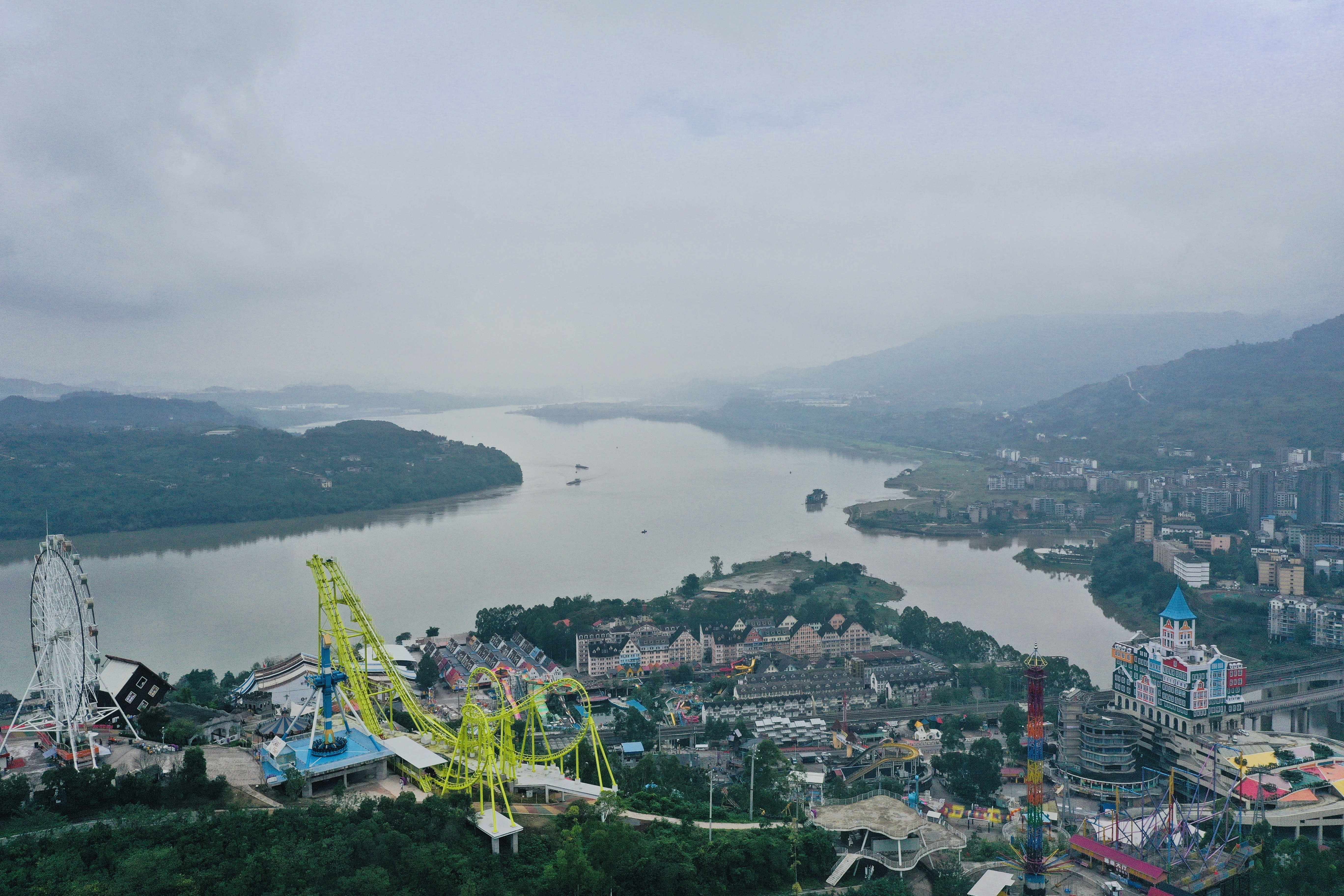 入秋后山城雨水增多,刚过去的寒露节气将人间带入秋高气爽的清秋时节。醉人的秋色铺满山河,氤氲的雾气在两江四岸流转,展现着季节轮换的万千气象。自三峡水库9月10日开启2023年175米蓄水以来,长江涪陵蔺市段美心红酒小镇景区江面浩淼,俨然变身为一座“滨海小镇”,呈现出烟雨平湖的壮美丹青水墨风景画。