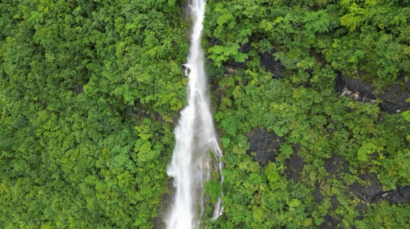 连日降雨过后,在城口明通镇金六村出现了风景如画的山涧瀑布美景。从空中俯瞰,瀑布从山间倾泻而下,仿佛美丽的白色绸缎,从山石之间飘落下来,撞在岩石上,飞花碎玉般洒满山涧,如烟、如雾、如尘。山涧瀑布与连绵群山相辅相融,构成了一幅幅充满灵气和动感的山水画卷,给苍翠的大巴山增添了几分俏皮与灵动。