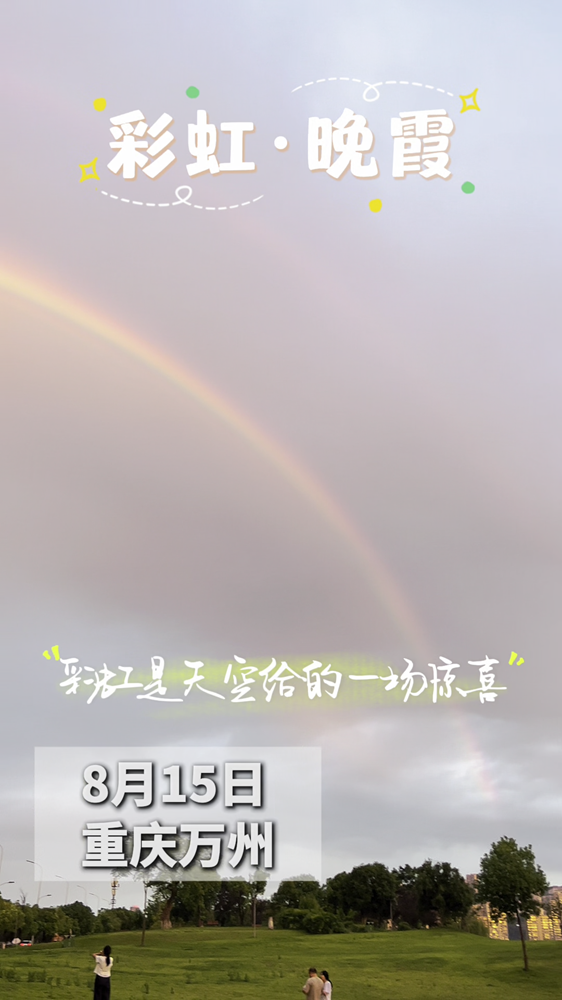 8月15日傍晚,万州天空突然出现一道巨大的彩虹,给外出乘凉的人一个意外惊喜。
