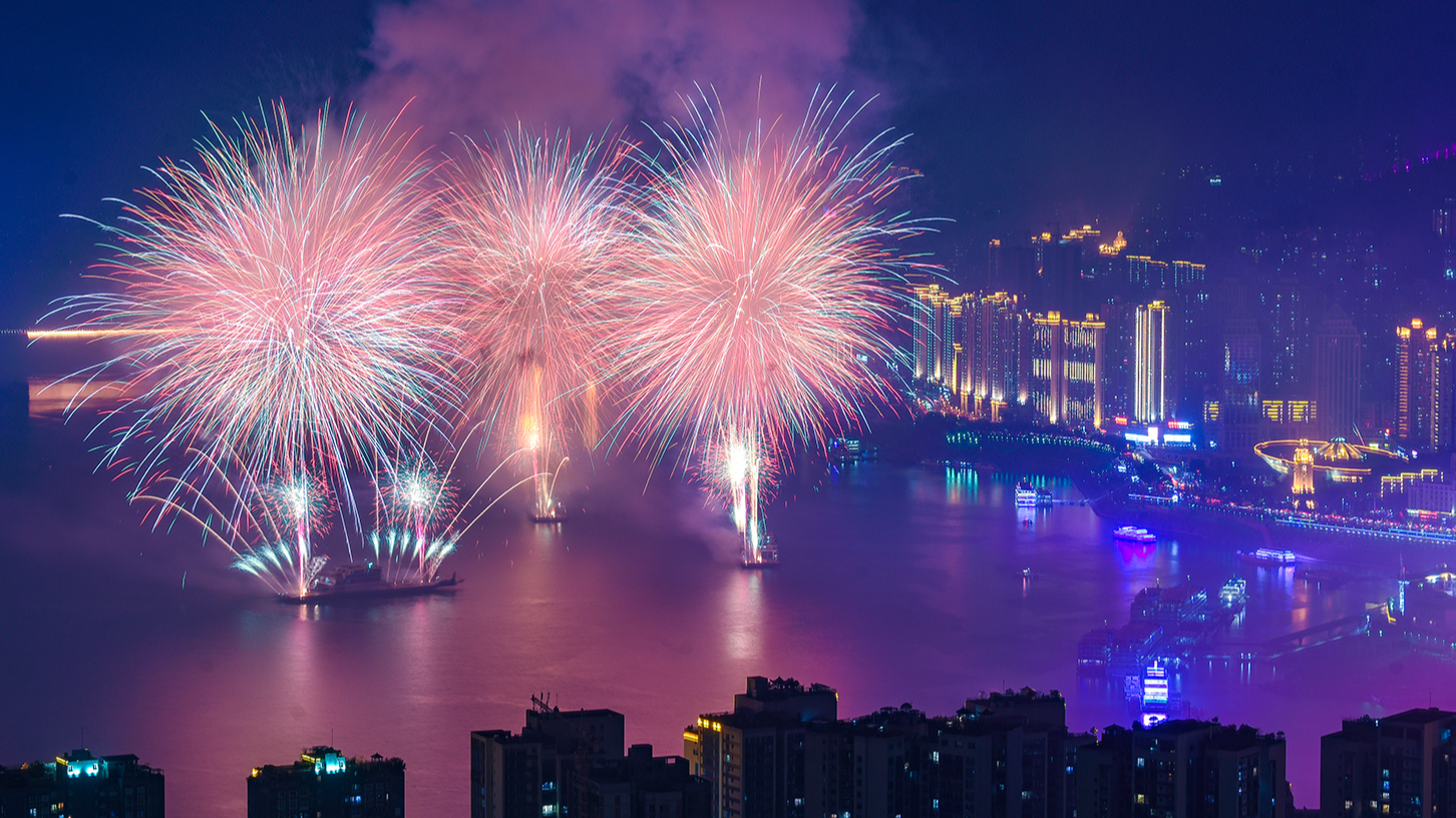 璀璨焰火、百花齐放,满城烟花耀苍穹。姹紫嫣红、交相辉映,一江诗画醉万州。大年三十晚上21时零十分,伴随着喜庆欢快的旋律,万州区2023年除夕焰火晚会在长江万州三峡移民广场段江面中心的三艘滚装船上激情点燃。