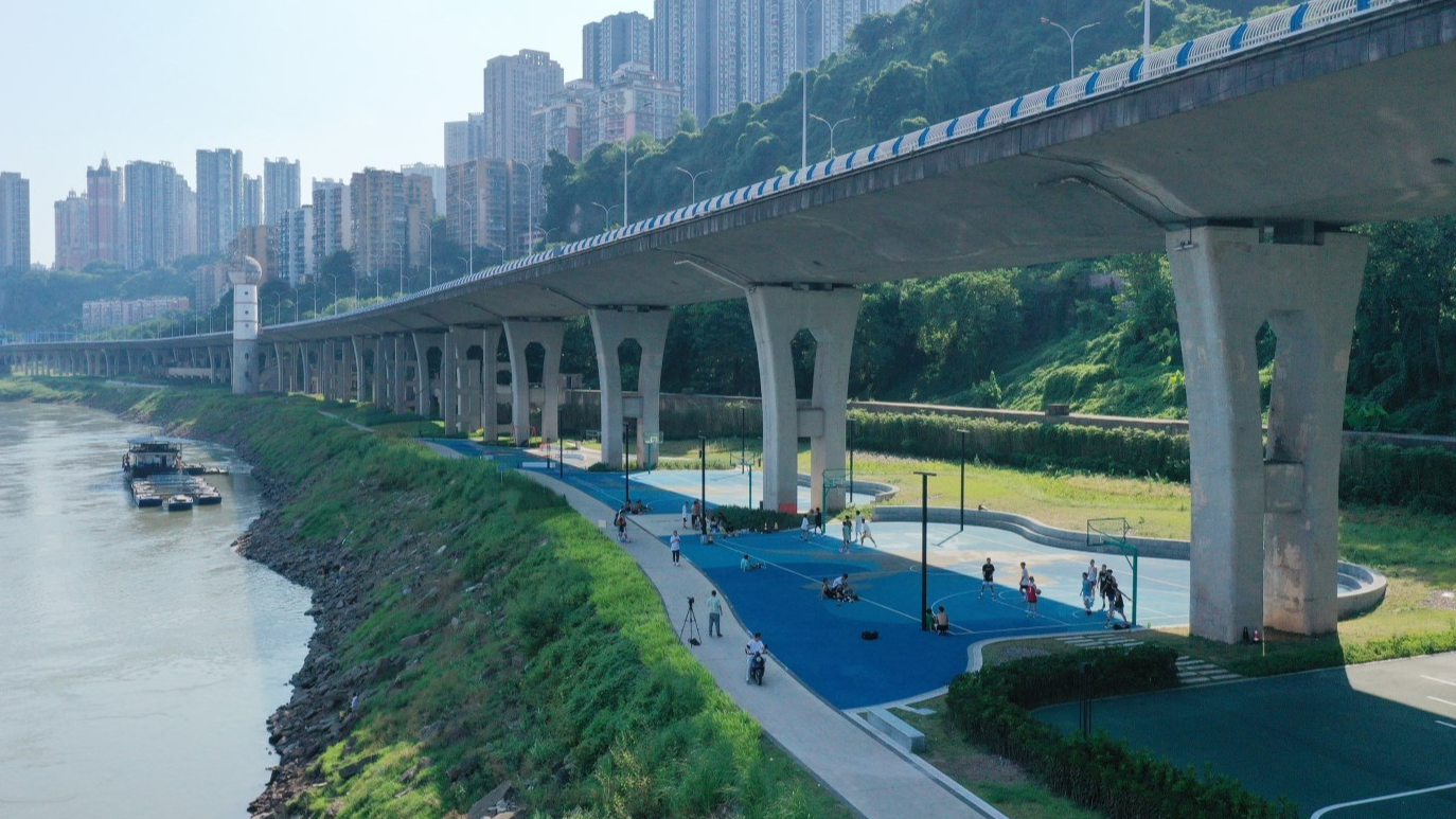 重庆渝中:桥下球场添风景 挥洒汗水享乐趣
