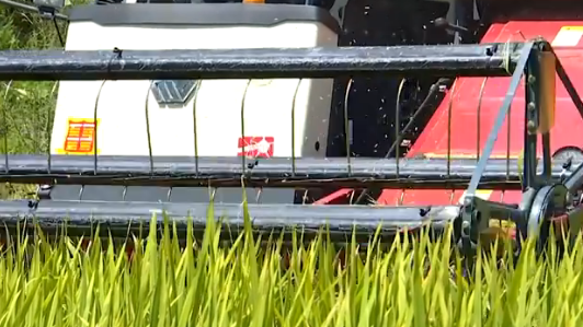 喜看稻田千层浪,又是一年丰收时。眼下,涪陵区蔺市街道白玉村种植的早熟稻陆续进入成熟期,沉甸甸的稻穗压弯了枝头。稻田里,伴随着机器的轰隆声,金黄的稻穗被收割机吞食进“肚子”,村民们露出喜悦的笑容。