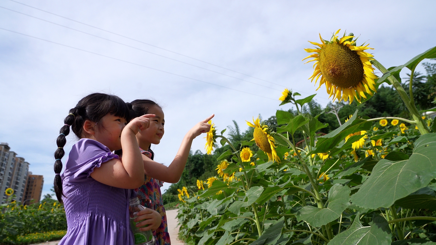 盛夏时节,大足区龙岗街道北禅社区近30亩向日葵竞相绽放,金黄花海与蓝天白云交织成画,吸引市民游客前来打卡。这片位于北塔悬岩综合体周边的金色海洋,不仅是城市后花园的“颜值担当”,更承载着社区对“家门口的诗和远方”的美好期许。