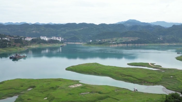 随着夏季库区水位下降,在巫山县大昌湖国家湿地公园内,近千亩浅滩上,形成了少见的“季节性湿地草原”奇观。吸引不少游客前来体验“水陆两栖”的夏日乐趣。