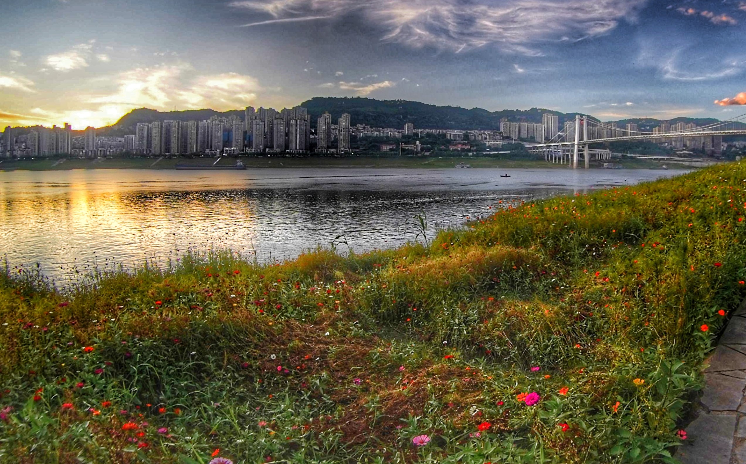 万州江边,大片花海铺展开去。各色花儿迎着江风摇曳,粉的娇俏,黄的明艳,紫的典雅。蜂蝶穿梭其间,江鸥掠水而过,游人驻足拍照,好一幅江畔花景图。