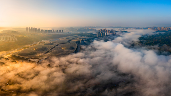 重庆渝北:美!晨雾缭绕 宛若海市蜃楼