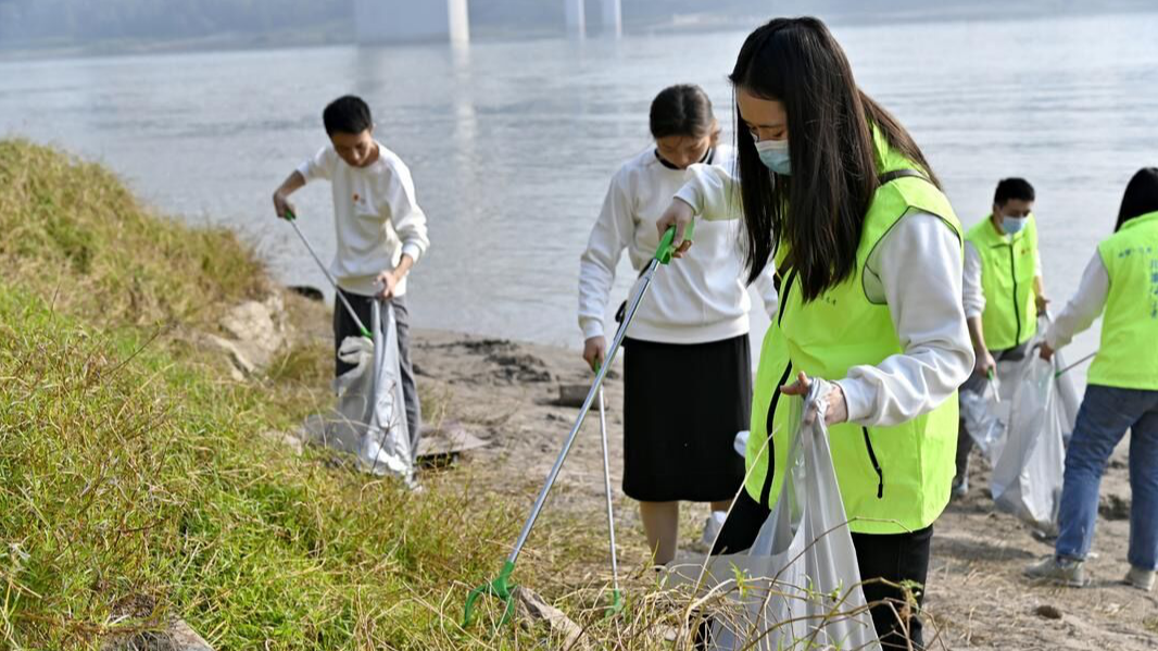 受今年汛期的影响,长江水位上涨迅猛,从上游冲刷下来的垃圾比往年多,针对此情况,大渡口区“河小青”志愿服务队来到江边,清理河岸垃圾,开展护河活动。