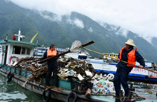重庆巫山:清漂队坚守岗位 确保长江江清岸洁