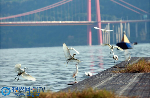 重庆忠县:冬日暖阳 鹭舞临江