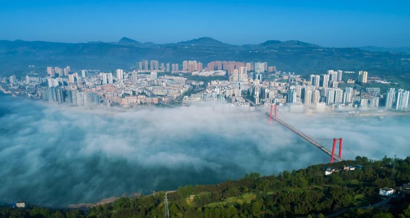 忠县城乡被一层薄雾笼罩,出现了难得一见的海市蜃楼景观。